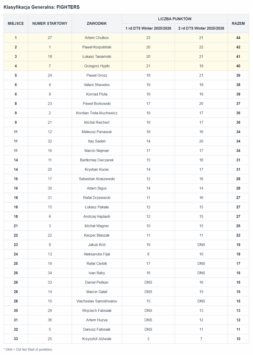 Klasyfikacja Generalna – FIGHTERS 2025/2026