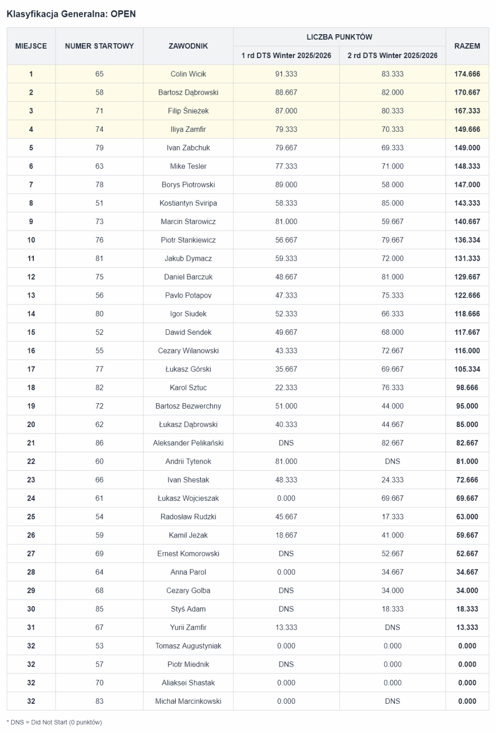 5. Klasyfikacja Generalna – OPEN 2025/2026
