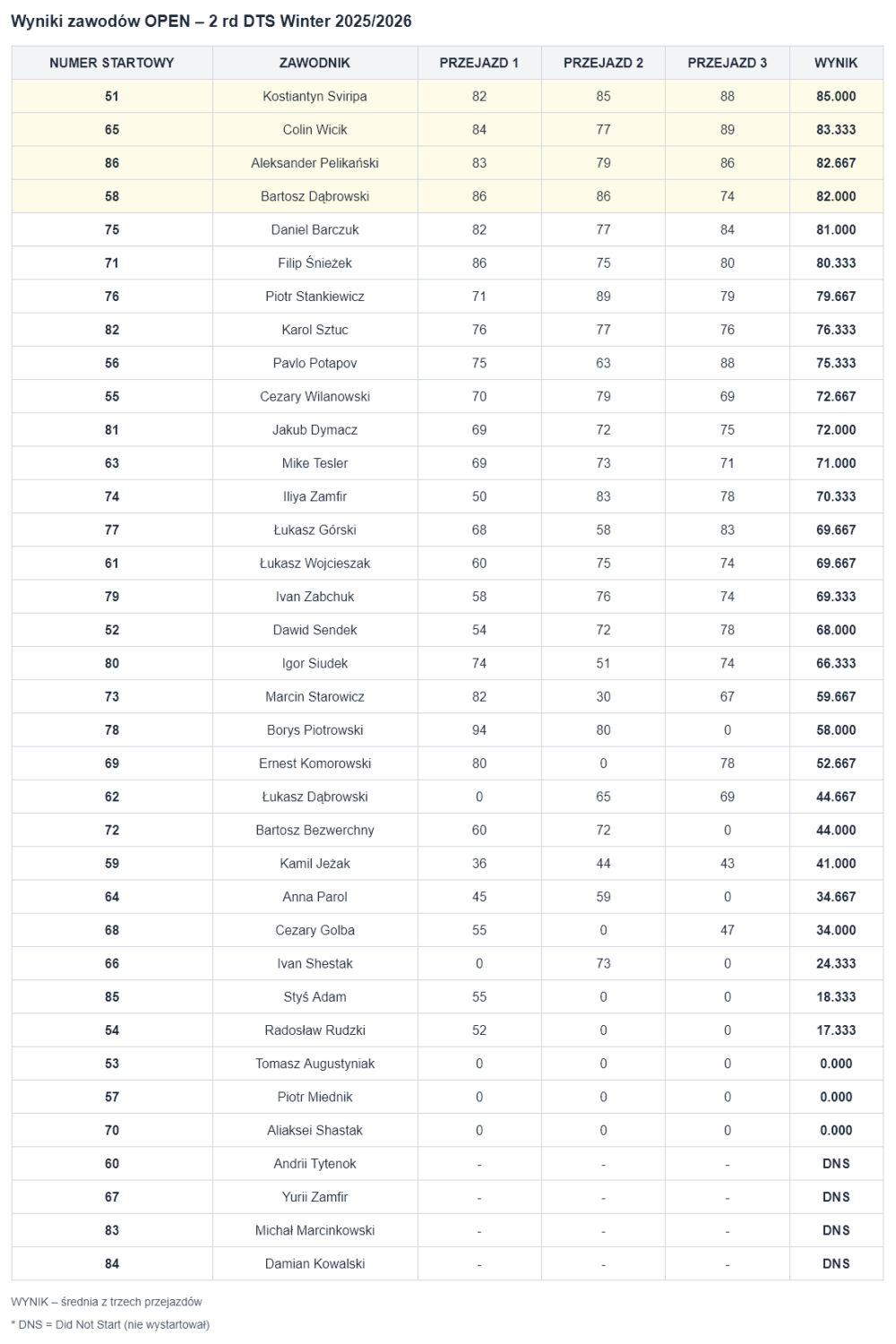 Wyniki zawodów 2 rundy – OPEN 2025/2026